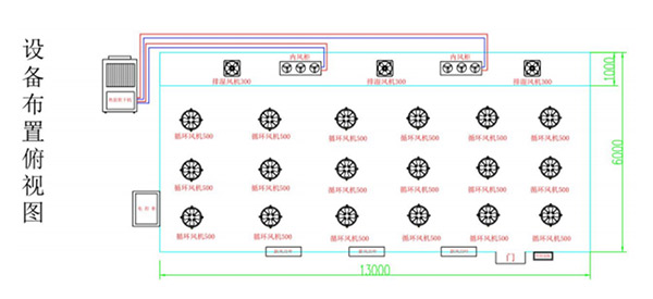 設(shè)備配置:超濾膜絲熱泵干燥裝置,用一臺(tái)20P熱泵烘干機(jī),對(duì)烘房吹熱風(fēng),配置兩臺(tái)內(nèi)風(fēng)機(jī),18臺(tái)擾流風(fēng)機(jī),兩臺(tái)排濕風(fēng)機(jī),整體構(gòu)成了烘干系統(tǒng),來(lái)滿足150平方烘房恒溫40-45度。