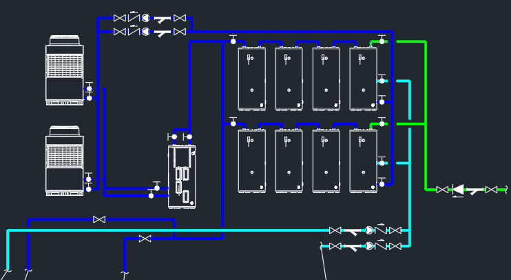 項目配置:2臺15匹空氣源熱泵配置9只455L閉式水箱
