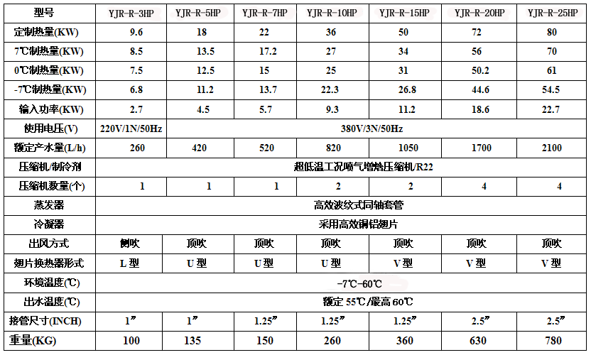 采用內螺紋銅套管親水鋁箔多流路蒸發器,藍色親水膜鋁箔翅片和內螺紋銅管結合,表面具有親水性,利用冷凝水的快速排出,不易結霜,化霜徹底,為了確保系統耐用,增大蒸發器的熱交換面積,換熱量均勻、充分,以保障多地吸取低位熱源中的熱量。