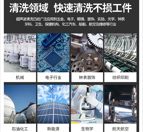 億家人超聲波一體式清洗槽廣泛用用于五金、電子、眼睛、首飾、實驗、光學、鐘表、牙科、衛生、保健機構、化工、汽車、船舶、航空及維修等行業。